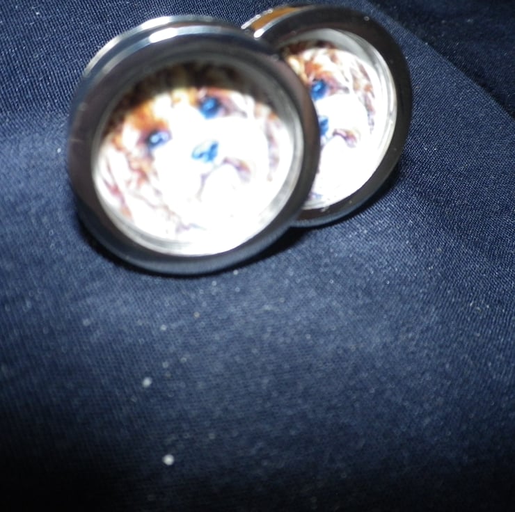 This listing is part of a programme of cufflinks made in my design studio in southern England..... images include graphic art... movies & music... animals & birds... sport,& romance...ships & planes…. plus a wide variety of other themes, all chosen for their vibrancy and visual impact......The cufflinks are crafted from rhodium plated alloy, are highly polished with a deep setting and shaped shank for ease of use, protected with a 15mm perspex disc, and are guaranteed to please menfolk on a wide variety of anniversaries and occasions ……..You will receive your purchase in a neat presentation box, gift wrapped, and with free shipping.