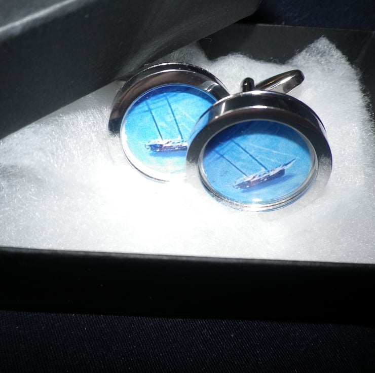 Schooner cufflinks, free shipping, gift wrapped, super image, Ref0951