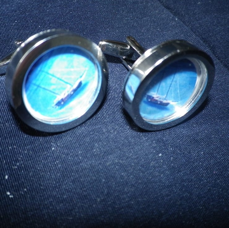 This listing is part of a programme of cufflinks made in my design studio in southern England..... images include graphic art... movies & music... animals & birds... sport,& romance...ships & planes…. plus a wide variety of other themes, all chosen for their vibrancy and visual impact......The cufflinks are crafted from rhodium plated alloy, are highly polished with a deep setting and shaped shank for ease of use, protected with a 15mm perspex disc, and are guaranteed to please menfolk on a wide variety of anniversaries and occasions ……..You will receive your purchase in a neat presentation box, gift wrapped, and with free shipping.