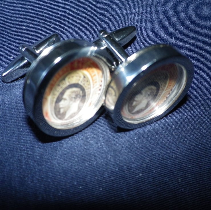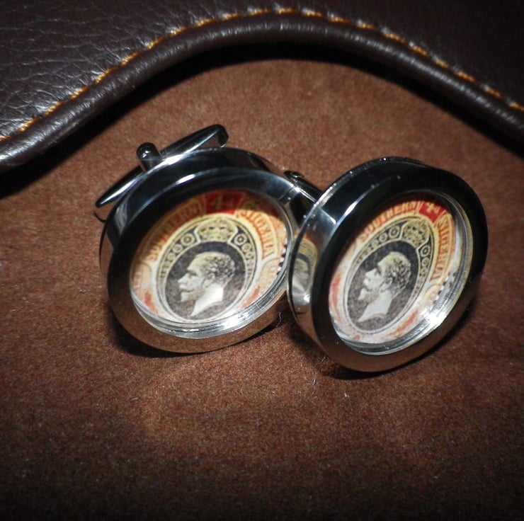 This listing is part of a programme of cufflinks made in my design studio in southern England..... images include graphic art... movies & music... animals & birds... sport,& romance...ships & planes…. plus a wide variety of other themes, all chosen for their vibrancy and visual impact......The cufflinks are crafted from rhodium plated alloy, are highly polished with a deep setting and shaped shank for ease of use, protected with a 15mm perspex disc, and are guaranteed to please menfolk on a wide variety of anniversaries and occasions ……..You will receive your purchase in a neat presentation box, gift wrapped, and with free shipping.