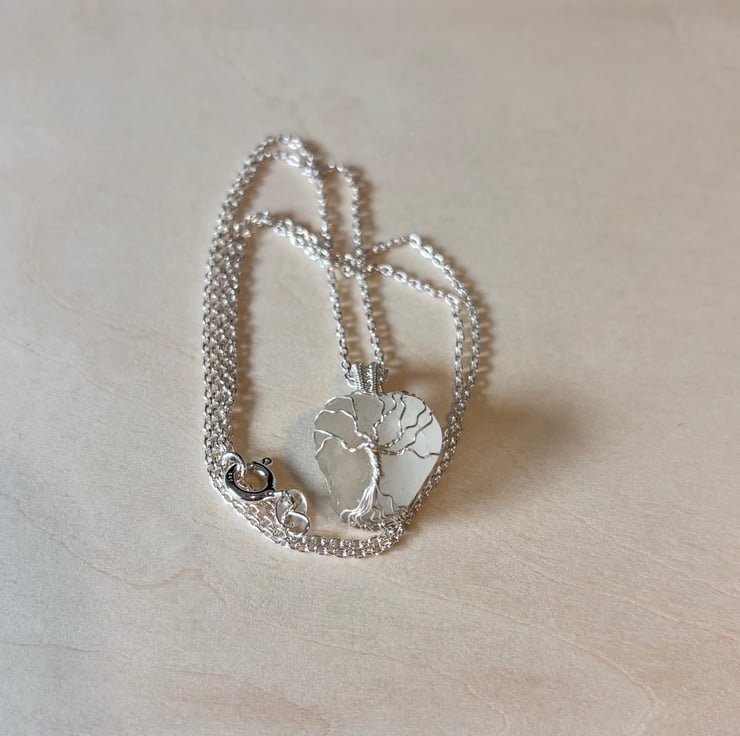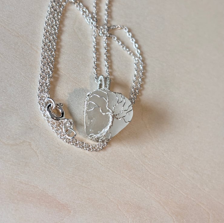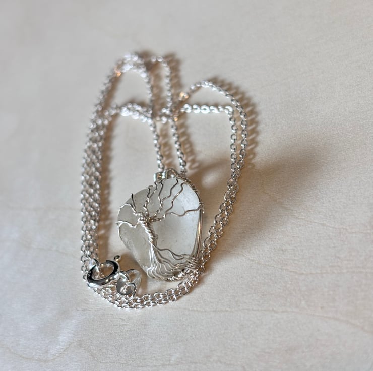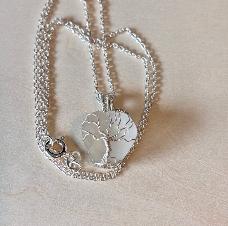 This is a gorgeous Tree of Life pendant that we have created using naturally tumbled Scottish sea glass. We never drill into the sea glass or use glue. Each piece is handwoven. We make the frame, the bail and each branch is then woven around the frame. This pendant measures 2cm long from the top of the bail and is 1.5cm wide (at its widest point). The pendant will include a 20" Sterling Silver Medium Trace Chain.