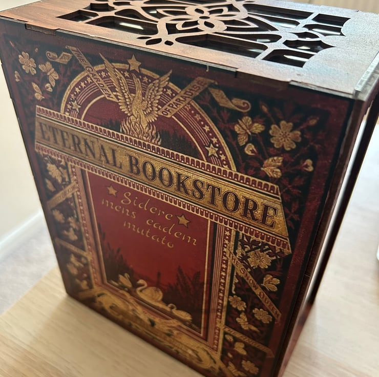 The Eternal Bookstore Book Nook arrives as ready made for you to gift, offering a way to give something as a lovely gift that is a handmade product.
