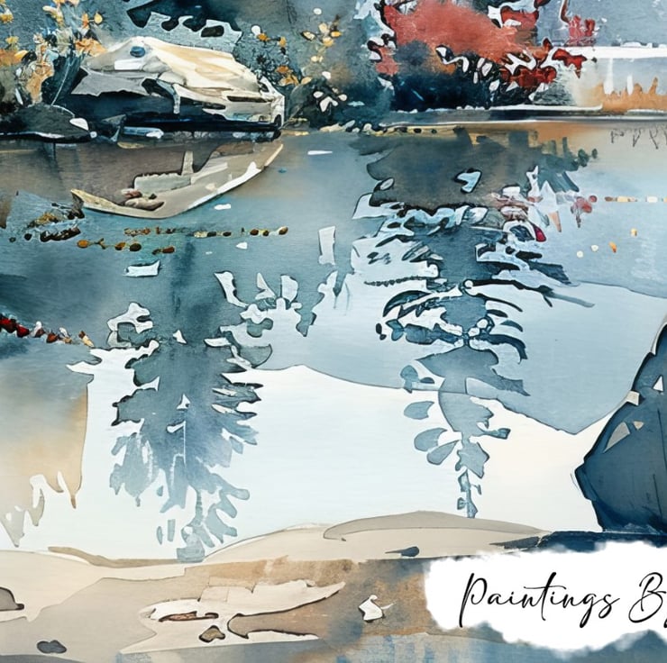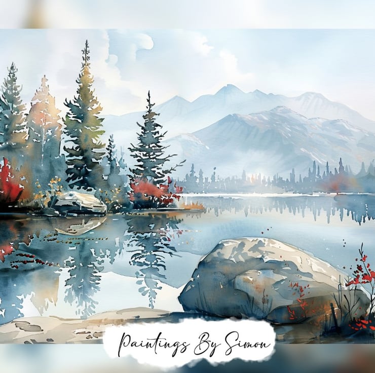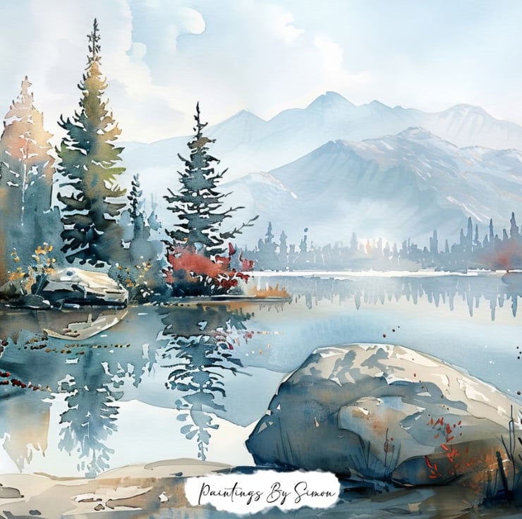 Ideal for bringing a touch of nature’s calmness into your home or office, this painting serves as a reminder of the peaceful moments found in the great outdoors. Indeed, whether displayed in a living room, bedroom, or workspace, it brings a sense of serenity and relaxation to any space. This serene mountain lake painting is a testament to the artist’s skill in capturing the calming beauty of nature.