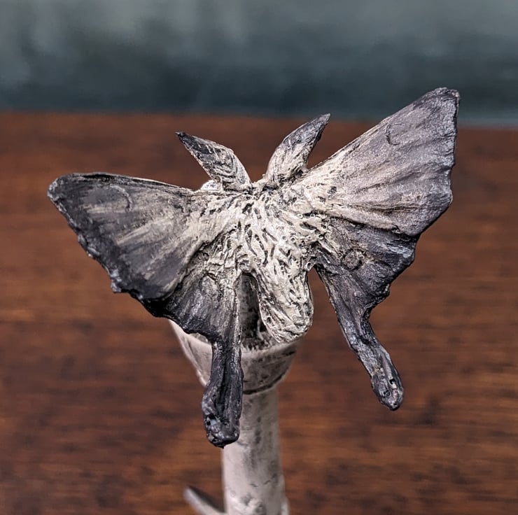 The Pale House is full of symbolism and the game if chess holds plenty of meaning. The idea that each piece would be its own little sculpture was floating around in my mind, the moths were added and help to give the pieces that extra bit of imaginary realism.
