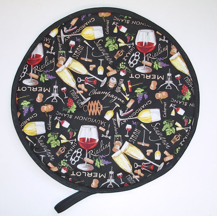This mat has three layers - Facing cotton fabric, a layer of padding and a layer of towelling - Making it also suitable for mopping up and pot-grabbing!