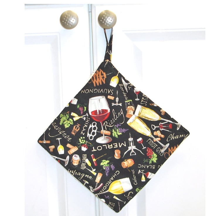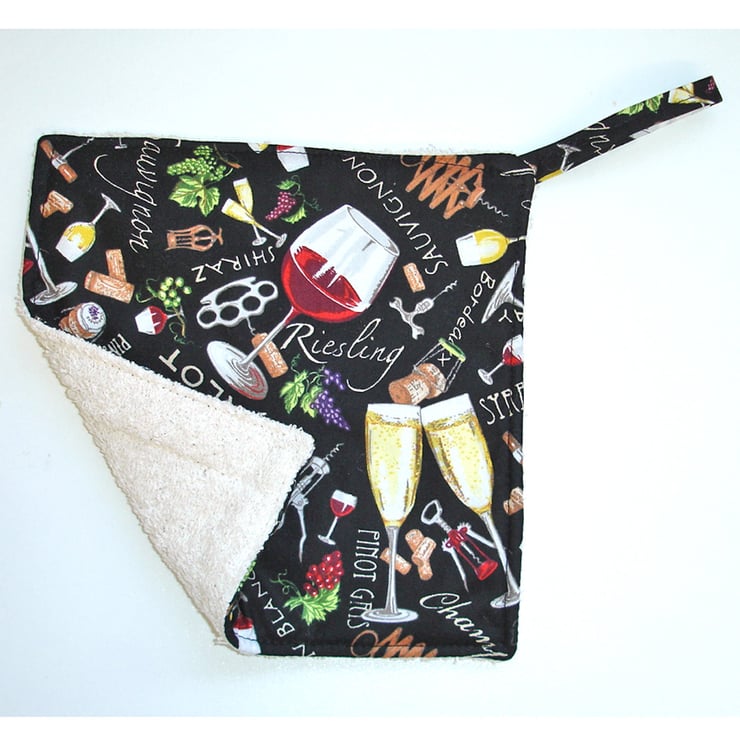 A Pot Holder backed with a cream towel fabric - useful for mopping up around the kitchen and passing those hot dishes round the table. Makes a great surface saver / coaster / trivet