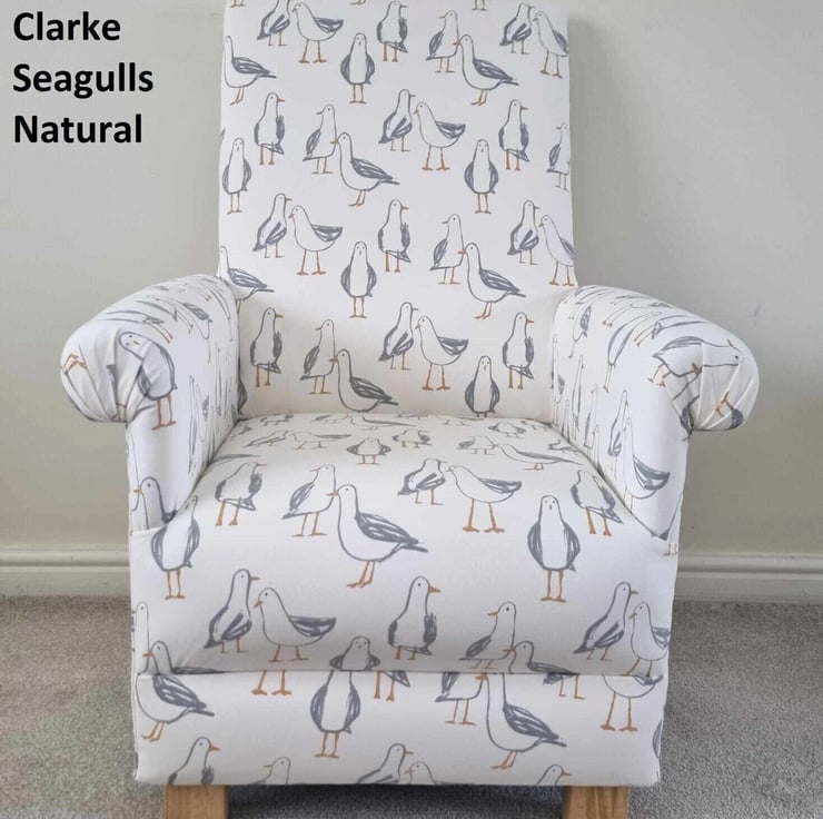 Clarke Seagulls Natural Fabric Adult Chair Armchair Coastal Beach Seaside Accent