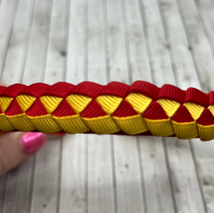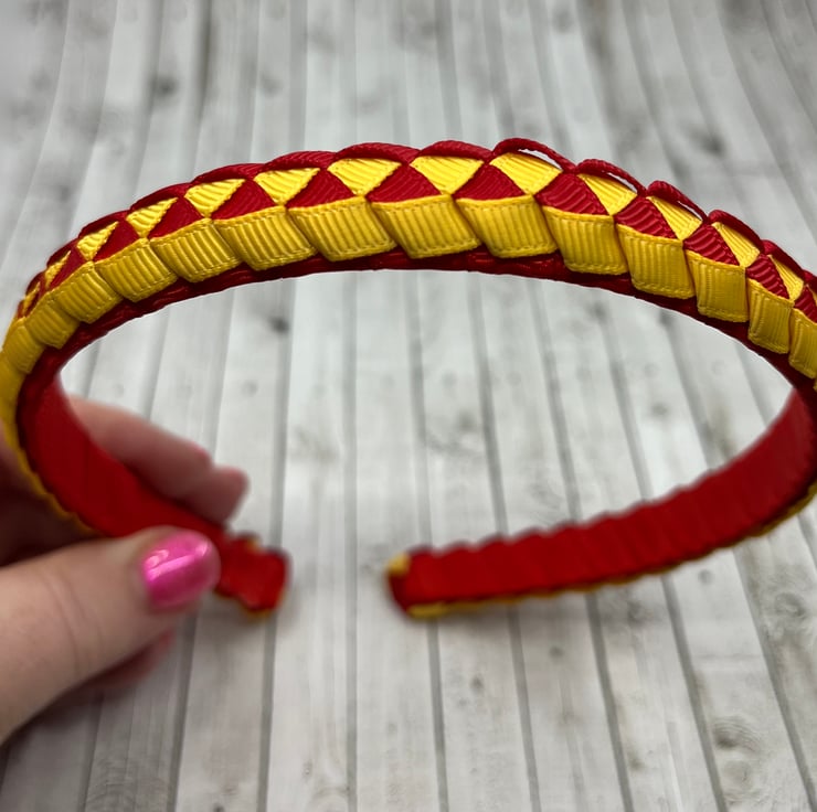 Our pleated hairbands are handmade here in our little shop. They are so cute the could compliment any school Uniform with red and yellow gold to keep those sneaky little curls from straying into your little one's eyes.