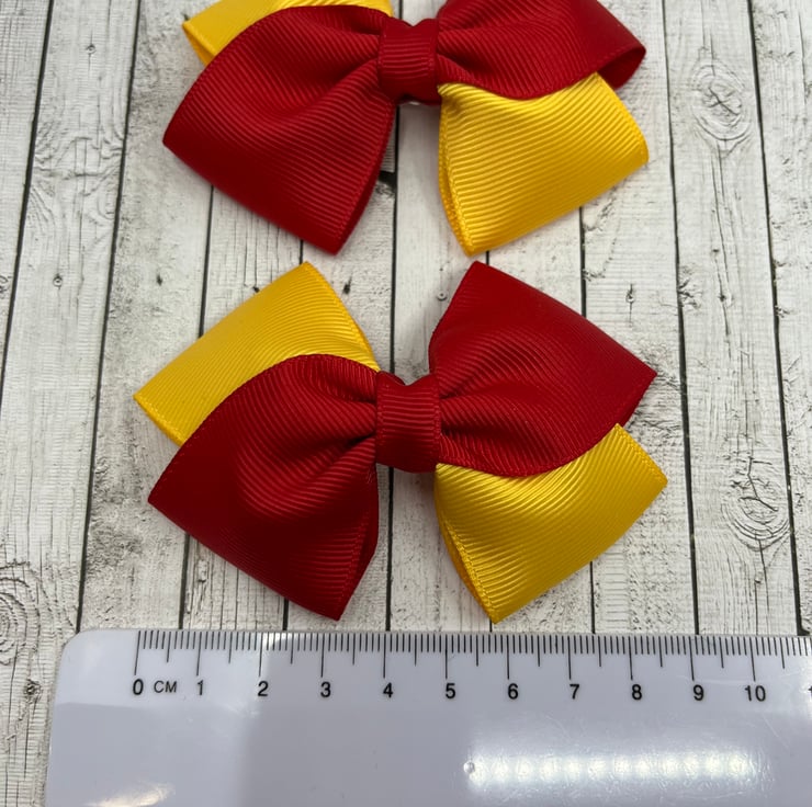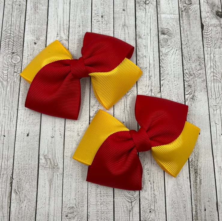 School Red and Yellow Gold Diagonal Double with Bows on Clips (pair)