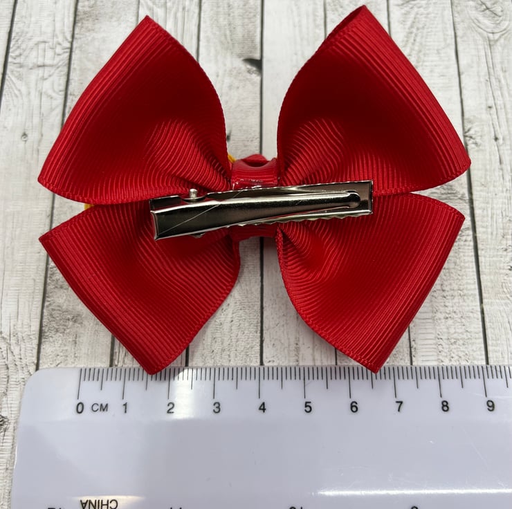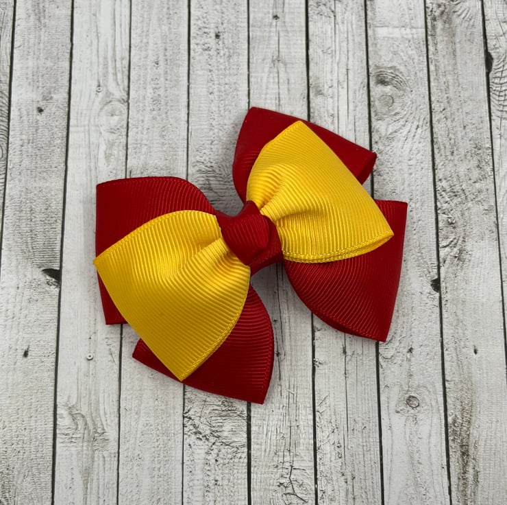 Our top knot bows are handmade here in our little shop. They are made from the best quality Grosgrain ribbon. These bows are really elegant and look extremely smart and go well with the red and yellow gold School Uniform.