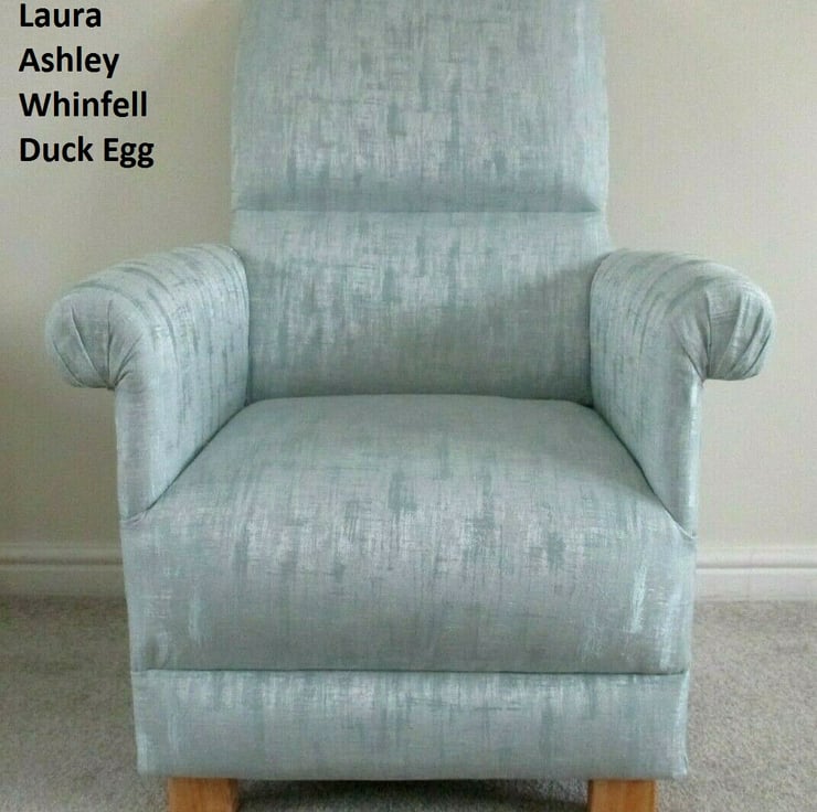 I am offering for sale, this gorgeous adult sized chair, which has been made by me, a professional upholsterer with 32 years experience, using Laura Ashley Whinfell Duck Egg fabric.