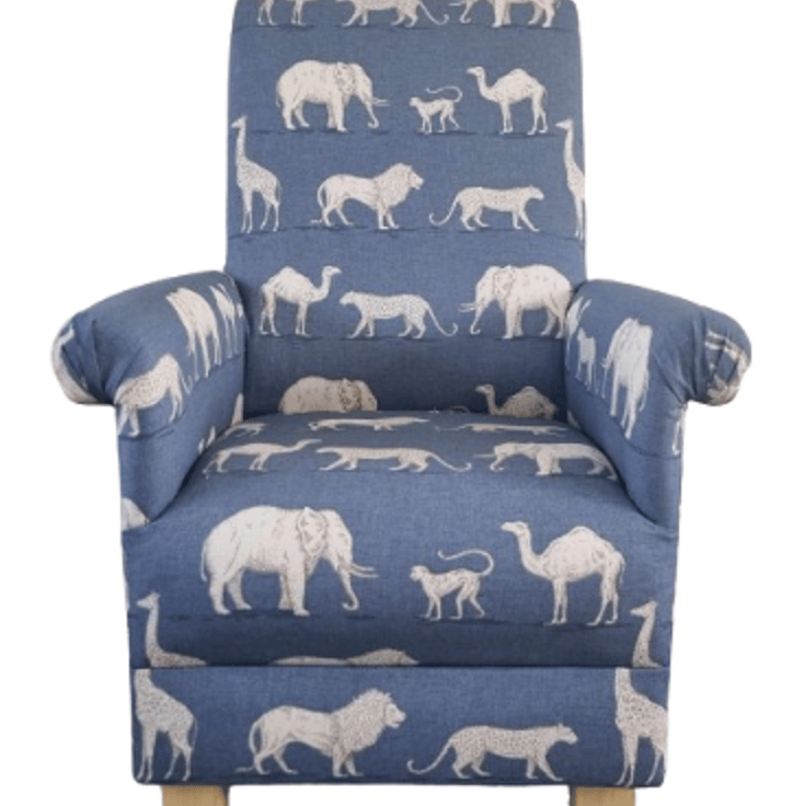 Prairie Animals Armchair Blue Adult Chair Safari Accent Lions Small Nursery Cats