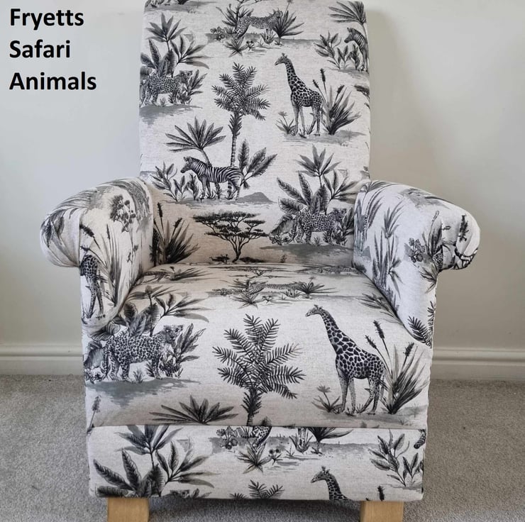 I am offering for sale this gorgeous ADULT'S chair, which has been made myself. I am a professional upholsterer with over 33 year’s experience, and have made this sturdy little chair using Fryetts Safari fabric.