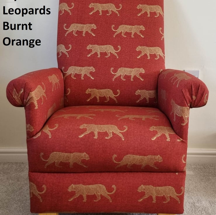 I am offering for sale this gorgeous ADULT'S chair, which has been made myself. I am a professional upholsterer with over 33 year’s experience, and have made this sturdy little chair using Fryetts Leopards fabric in Burnt Orange.