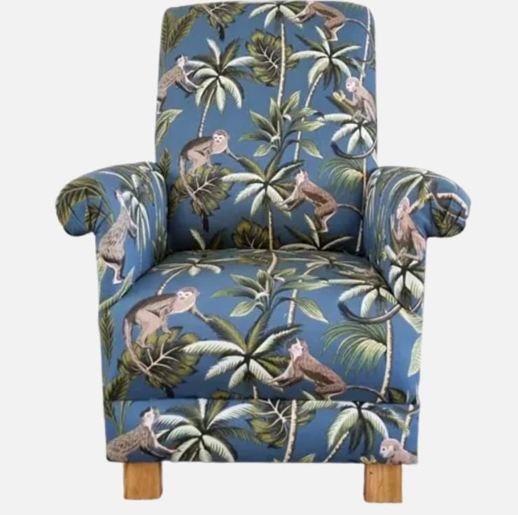 Monkeys Jungle Armchair Adult Chair Fryetts Teal Fabric Safari Animal Botanical
