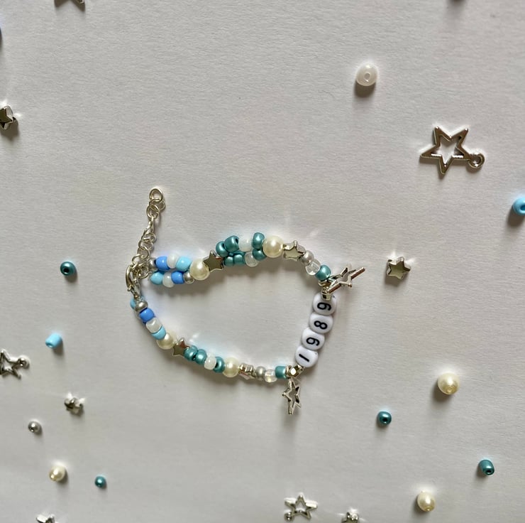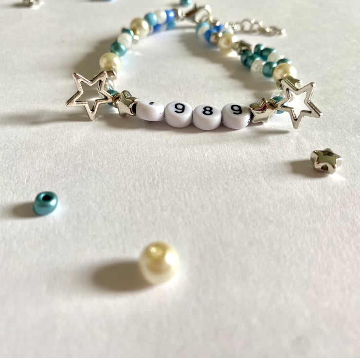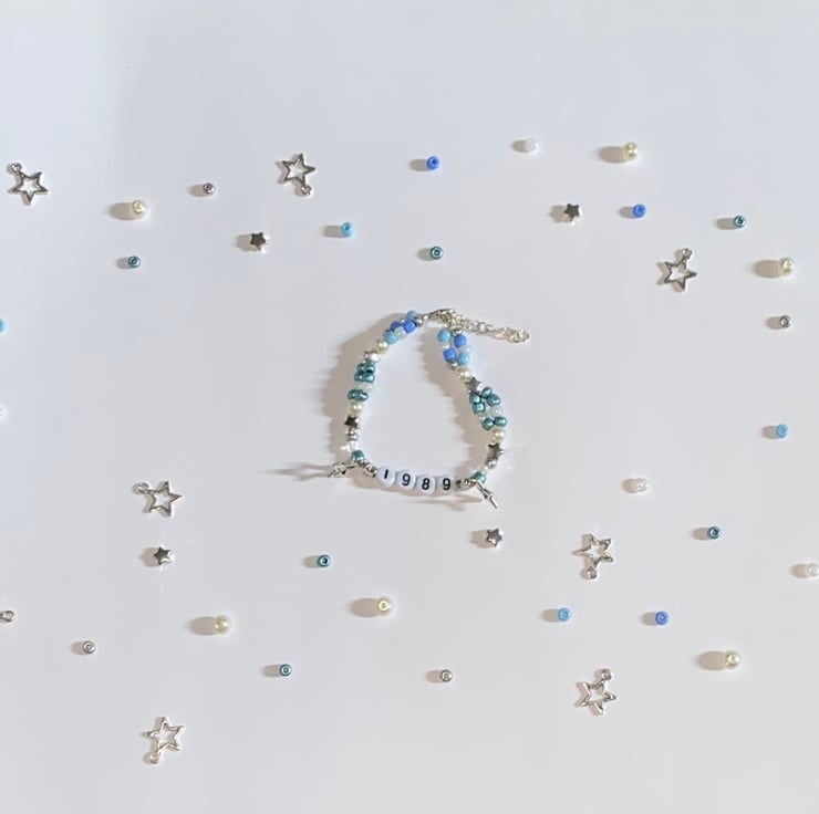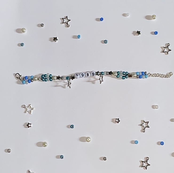 Complex, unique beaded bracelet. Inspired by the album 1989 . Perfect for the Eras Tour or just for any Swiftie. Multi-layer seed bead bracelet.