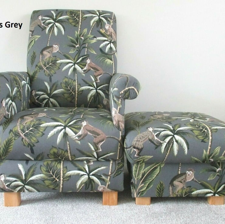 Grey Monkeys Chair & Footstool Adult Armchair Pouffe Fryetts Nursery Jungle Apes