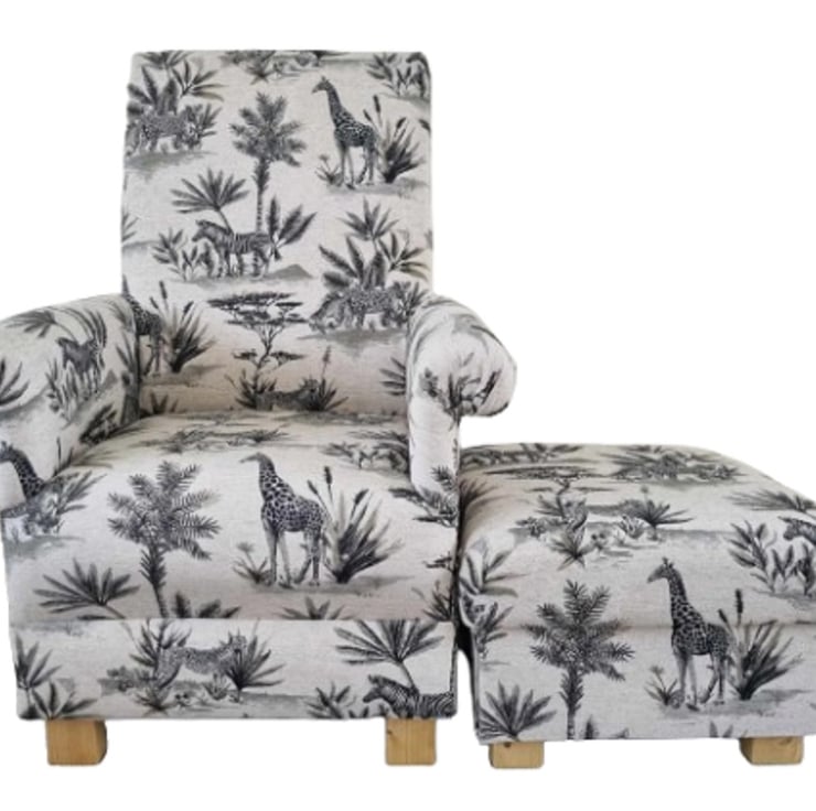 Safari Animals Chair & Footstool Adult Nursery Armchair Jungle Cream Grey Small
