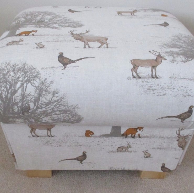 I am offering for sale this gorgeous ADULT'S chair, which has been made myself. I am a professional upholsterer with over 33 year’s experience, and have made this sturdy little chair and matching footstool, using Fryetts Tatton Animals fabric.