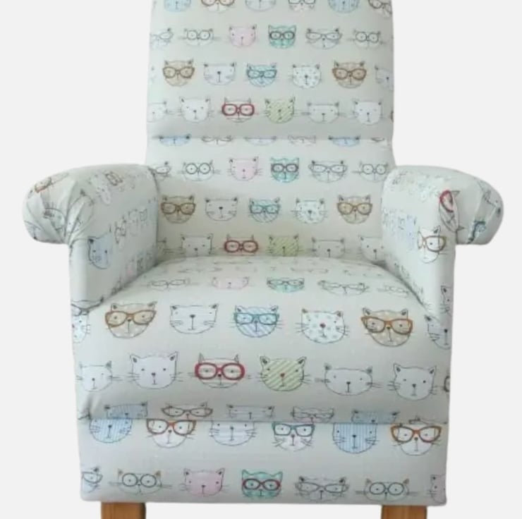 I am offering for sale this gorgeous ADULT'S chair, which has been made myself. I am a professional upholsterer with over 33 year’s experience, and have made this sturdy little chair using Clarke & Clarke Cool Cats fabric.