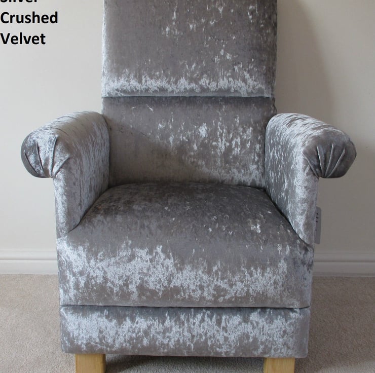 I am offering for sale this gorgeous ADULT'S chair, which has been made myself. I am a professional upholsterer with over 33 year’s experience, and have made this sturdy little chair and matching footstool, using this luxurious crushed velvet fabric in Silver Grey.