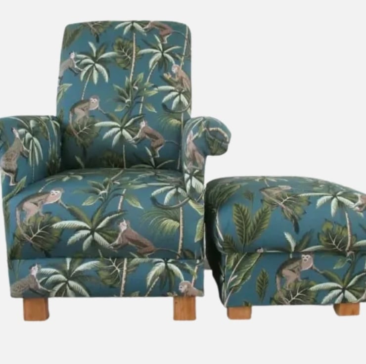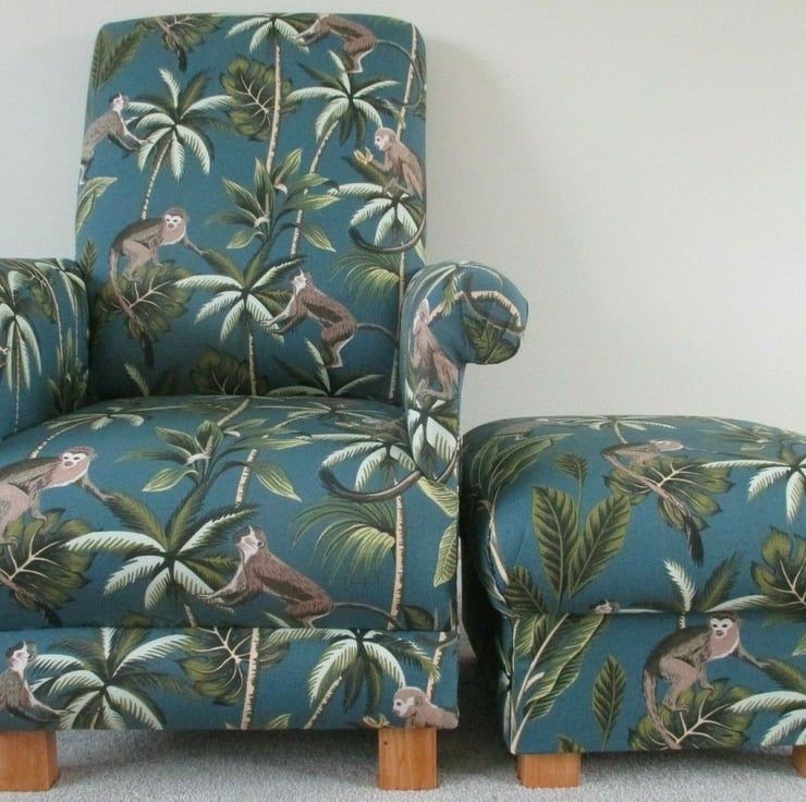 Monkeys Teal Chair & Footstool Adult Armchair Fryetts Fabric Animals Nursery New