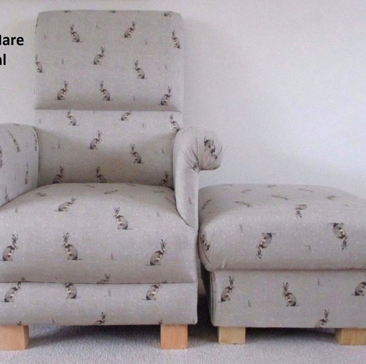 Hares Armchair & Footstool Fryetts Natural Hartley Fabric Adult Chair Animals