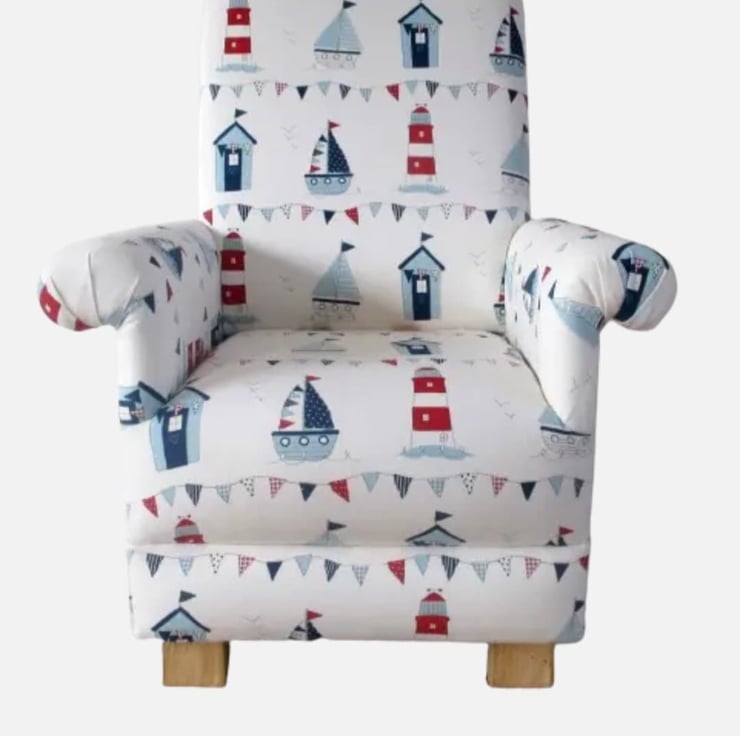 Child's Chair Fryetts Maritime Boats Fabric Blue Red Kid's Armchair Sailing Sea