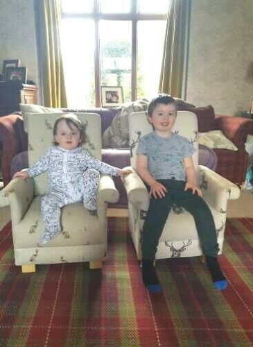 This lovely little armchair measures approximately 29 inches in height, by 22 inches wide and is suitable for children aged up to 9 or 10 years. It has a wooden frame and has a fire retardant interliner, which makes it compliant with UK fire regulations.