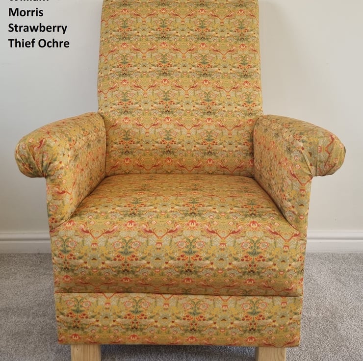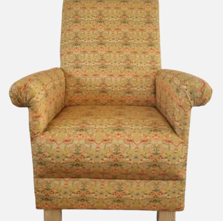 Adult Armchair William Morris Strawberry Thief Ochre Fabric Chair Mustard Gold