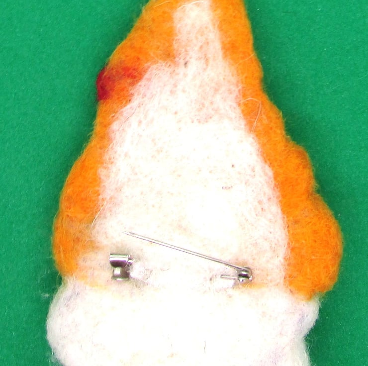 This lovely handmade felted gnome Brooches, Pins & Clips ,Pins & Badges is an adorable and unique accessory for any clothing or bag. Measuring 12.5 centimeters in length and 7 centimeters in width, it is needle felted from high-quality wool. Its cute design makes it a perfect gift for a friend or as a small gift idea.
