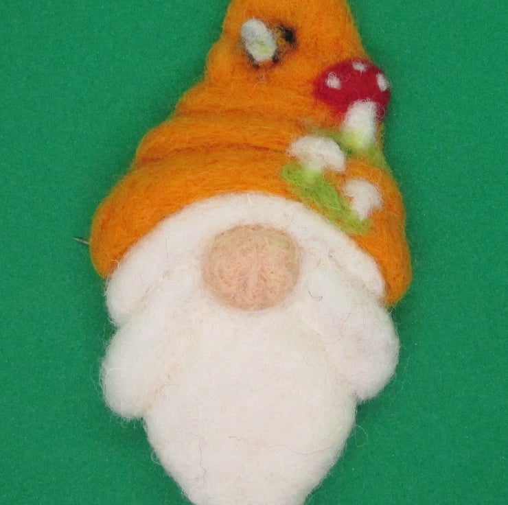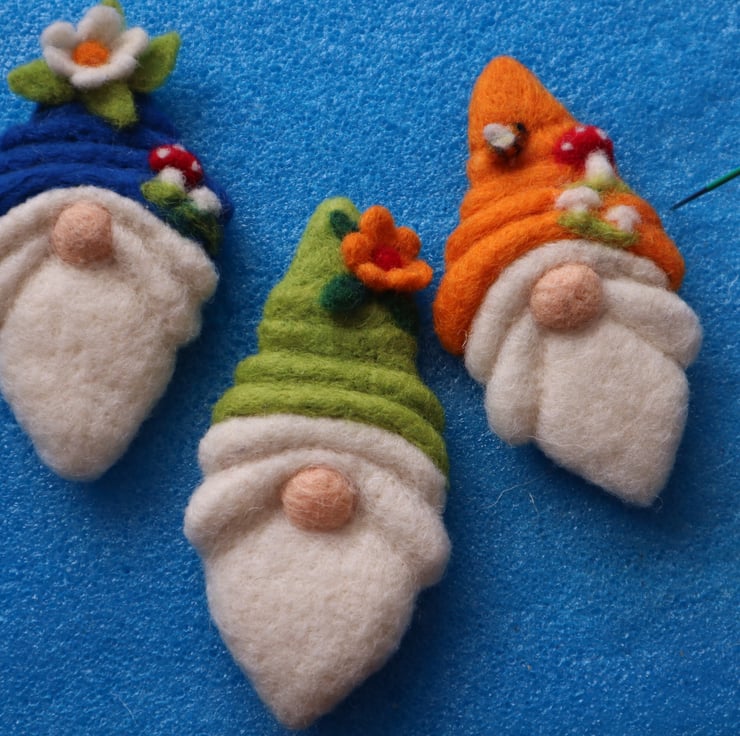 Brooches Pins Clips Handmade felted Gnome Toadstool Mushroom bee flowers Hats