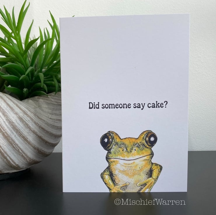 This frog card features a print of my hand drawn/painted ink and watercolour illustration of a cute frog. Blank or personalised for any occasion; birthday, Valentine’s, Mothers Day, Fathers Day, Thank you or Christmas perhaps. Perfect for any amphibian lover.