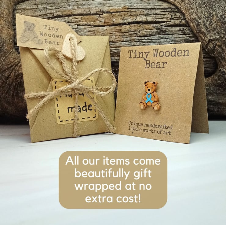 Tiny Prostate Cancer Ribbon Badge, Handmade Prostate Cancer Awareness Bear Pin