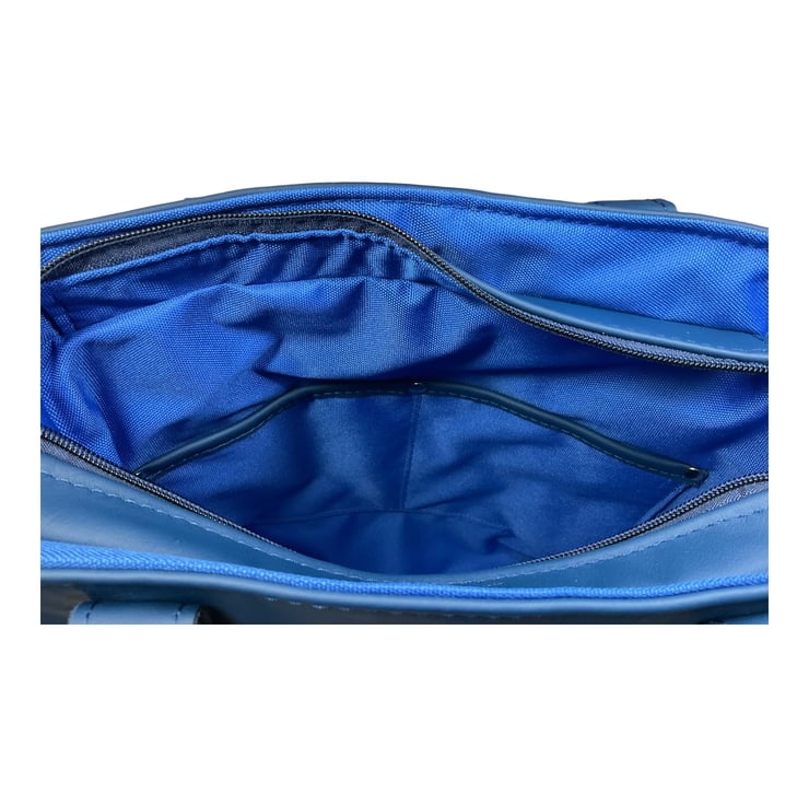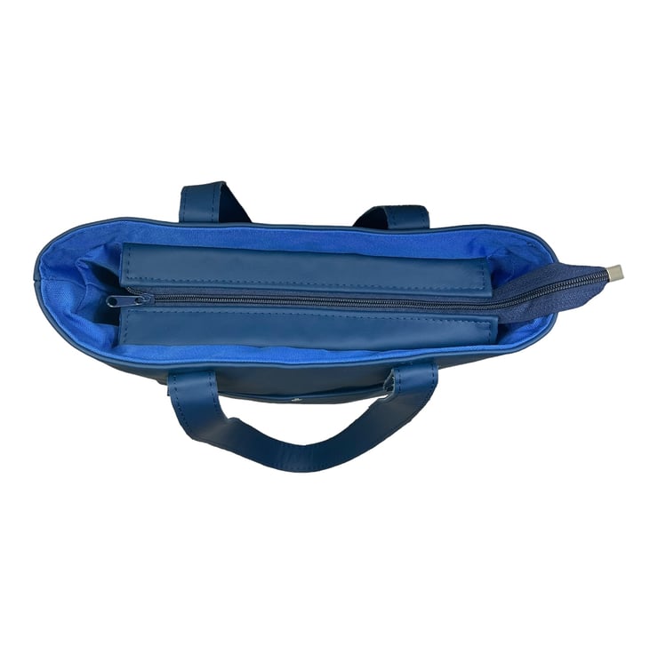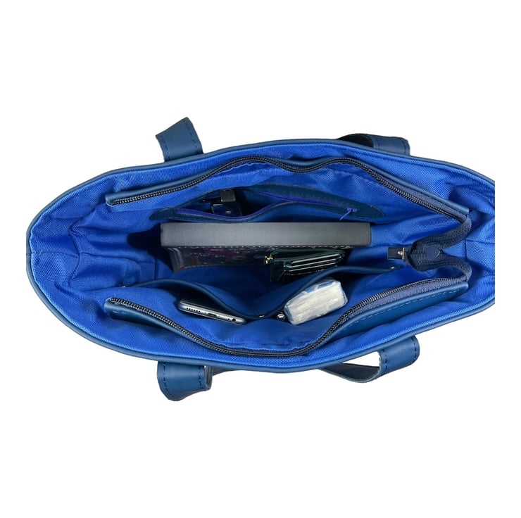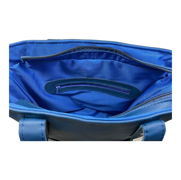 Made completely externally in leather, this bag is fully lined in a royal blue water resistant lining