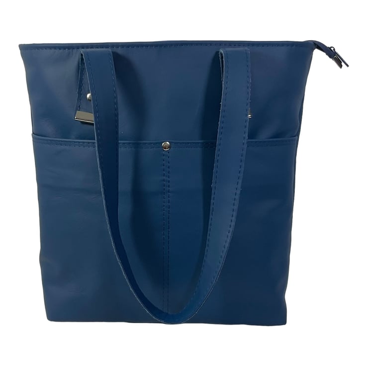 Gorgeous deep royal blue real cows leather medium sized tote bag, great as an every day bag.