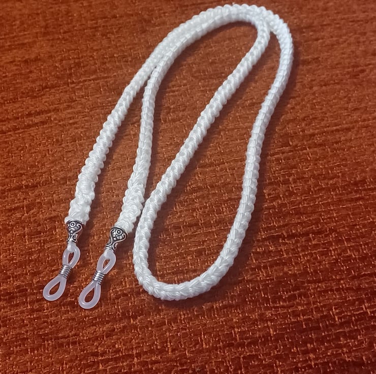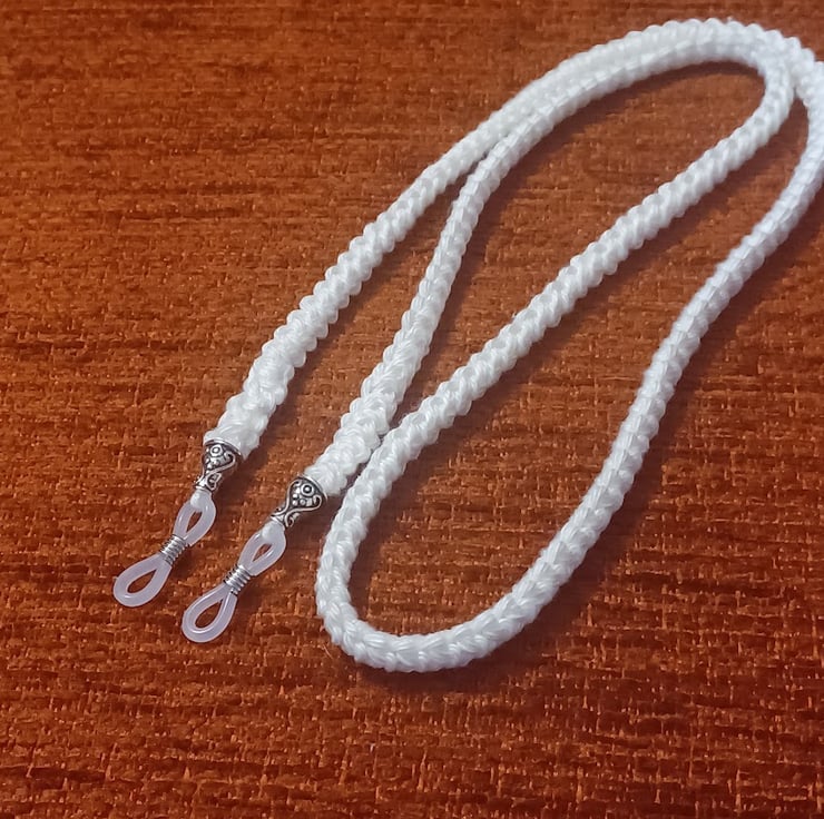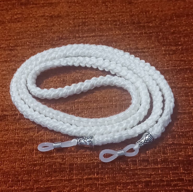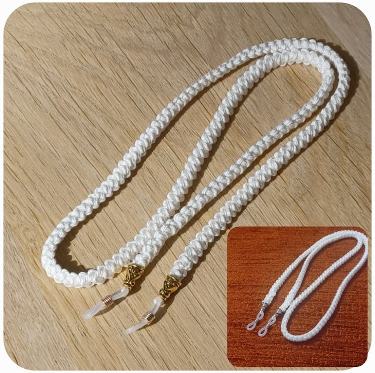Milk white colour cotton cord for glasses with nice gold or silver colour end bead and white (clear) loop
