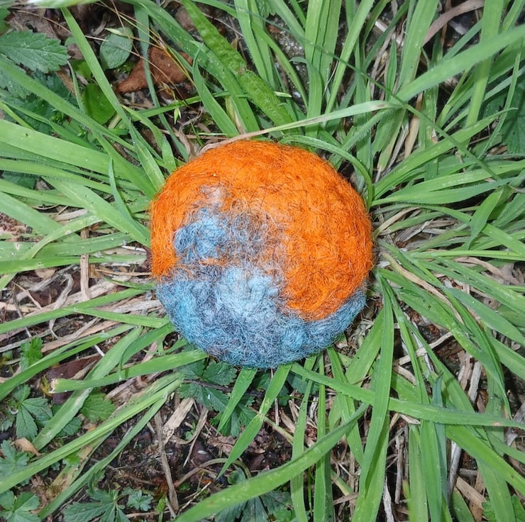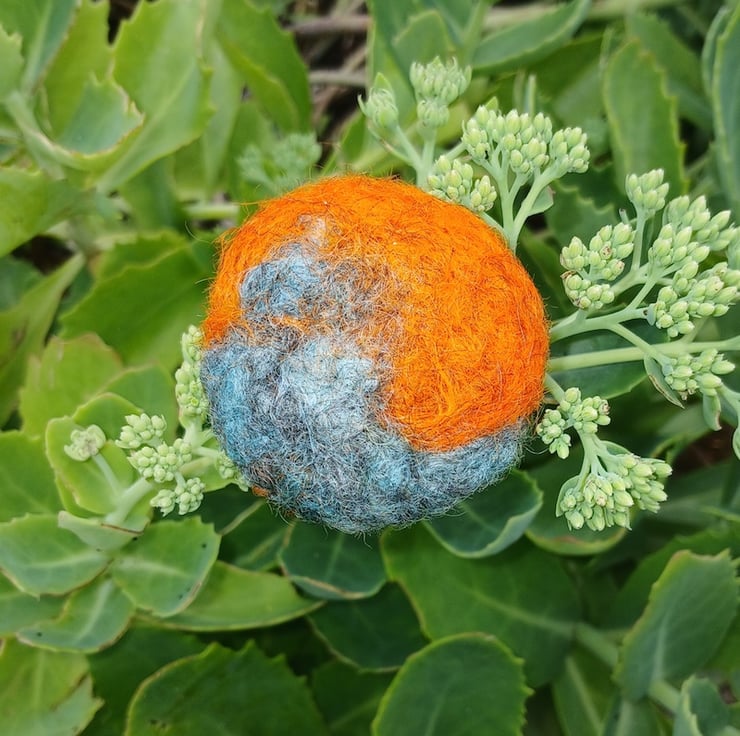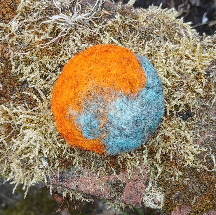 This brooch is part of a Planet collection. Inspired by the abstract shapes you see in photos of the planets using colourful hand dyed fleece from my Gotland sheep. Each brooch is a 'one off'and unique.