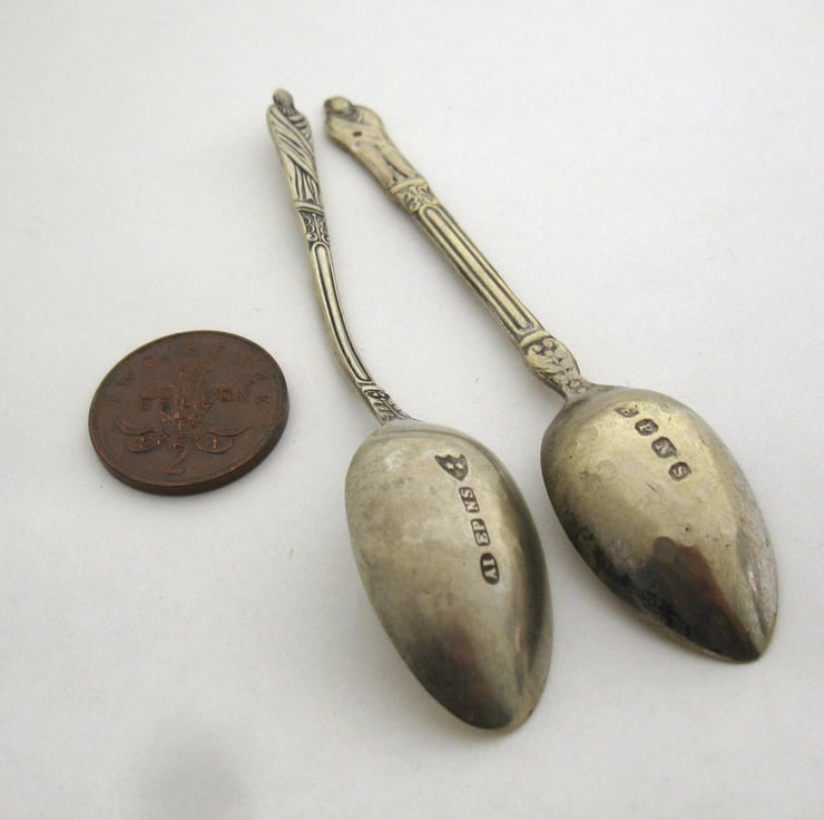 These are very old spoons and have lost pretty much all their original silver plating. You will get the spoons in the photos so please do look at the photos carefully if the condition of the spoon is at all important in comparison to the message. (Tip: It probably isn't.)