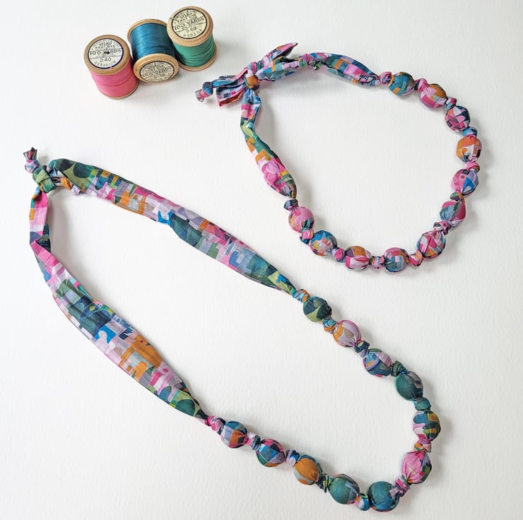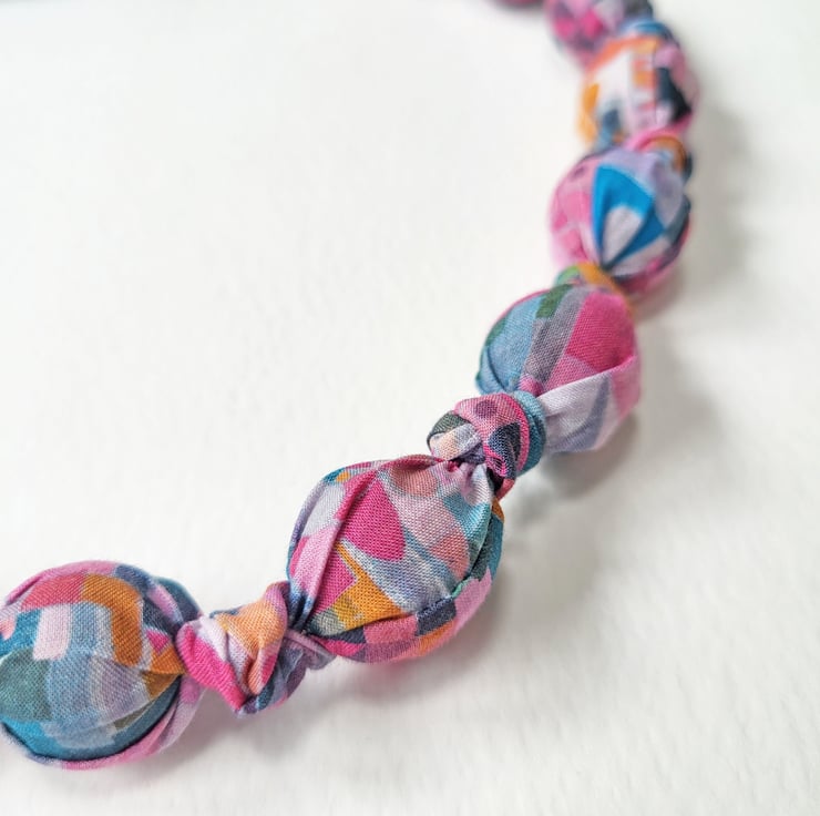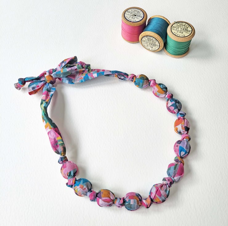 This Liberty print fabric necklace can be tied with a bow or a knot to vary the length from choker to mid chest. It is made out of Tana Lawn 100% cotton and so feels very soft next to your skin and has just the right weight to it to make it hang nicely.