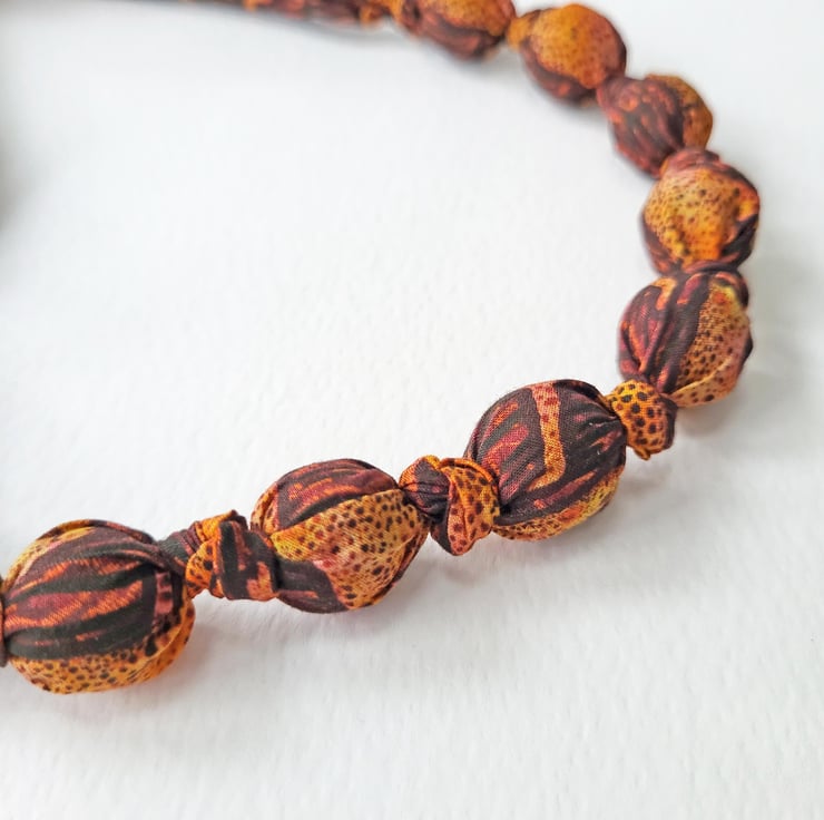 Orange, Brown & Black Liberty Cheetah Print Fabric Necklace - Meet the Cheetahs