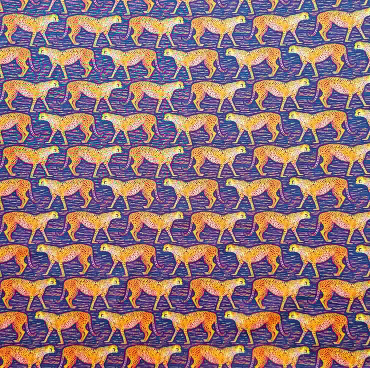 The Liberty Meet the Cheetahs animal print is inspired by the late illustrator and picture book creator, Brian Wildsmith and features one of his favourite animals to illustrate - the cheetah.