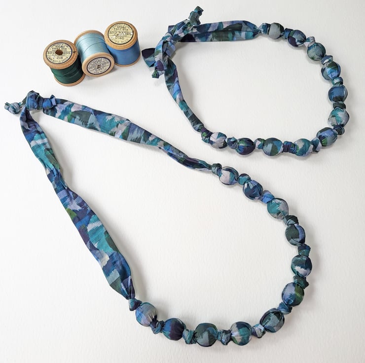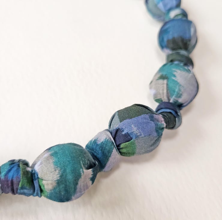 Blue, Green & Grey Liberty Print Fabric Necklace - Ikat Night