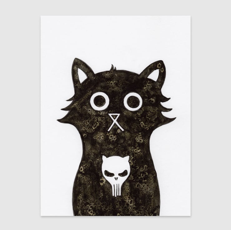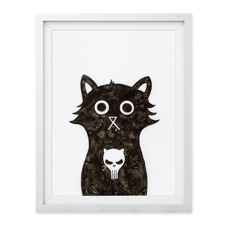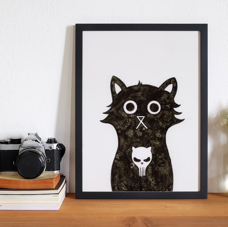 Black Cat Gift, Halloween Gift, Skull Art Print, Superhero Print, Punisher Style