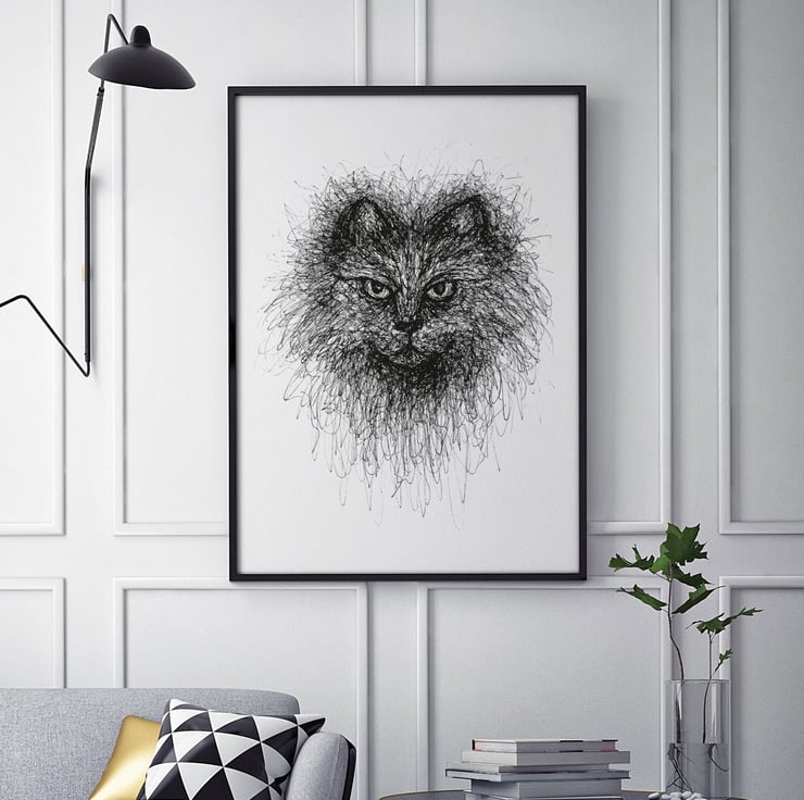 Scribble Cat Wall Art Print, Black And White Animal Print, Cat Print