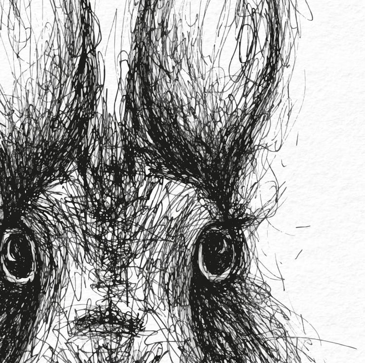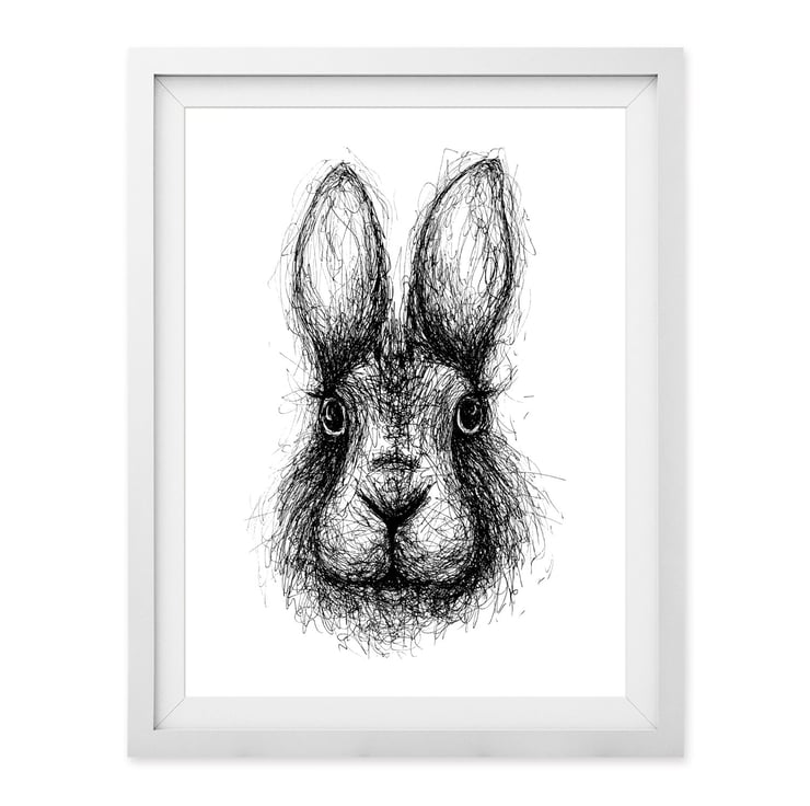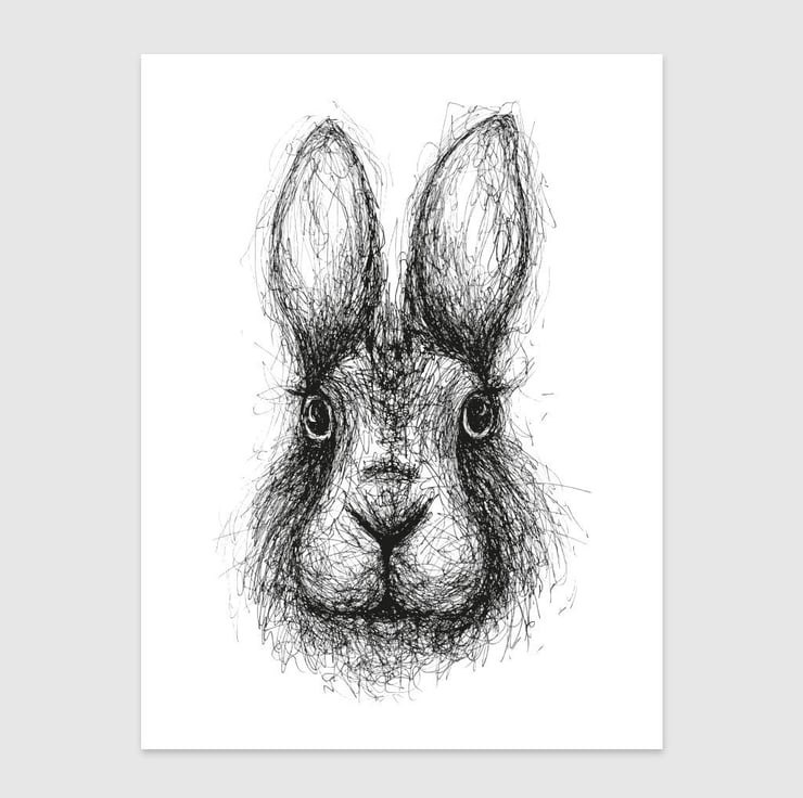 "Scribble Rabbit" is a stunning A4 print that captures the playful essence of this hand-drawn bunny. The black and white design is both bold and delicate, with the bunny fluttering their lashes in a loving gaze. The loose scribbles bring a sense of movement and liveliness to the piece, making it the perfect addition to any room in your home. Whether you're looking to add a touch of whimsy to your living room, bedroom, or even your office, "Scribble Rabbit" is sure to bring a smile to your face every time you look at it. The white background highlights the bunny's playful features and allows the eye to focus on the intricate details of the hand-drawn design. If you're looking for a piece of art that is both unique and versatile, "Scribble Rabbit" is the perfect choice.