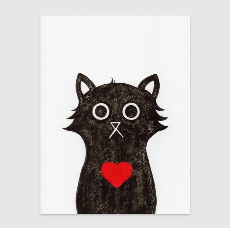 Love Cat is a charming A4 hand illustrated print that captures the essence of feline affection. The black cat in the print has a red love heart on its chest, making it a perfect choice for those who want to decorate their homes with a touch of love and cuteness. This print is suitable for all ages and will look great in a nursery, a child's room, bedroom or a living room. The giclee printing process provides exceptional detail and colour accuracy, ensuring that the print will look as vibrant and beautiful years from now as it does today. Whether you're a cat lover or simply appreciate unique and handcrafted artwork, Love Cat is a must-have for any art collection. It makes a wonderful gift for Valentine's Day, a birthday, or any other special occasion. With its charming and playful design, Love Cat is sure to bring a smile to your face every time you see it.