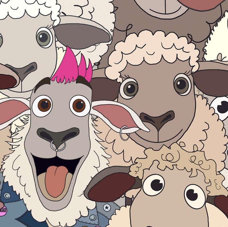 Introducing "Be Ewe" the rebelliously adorable A4 size wall art print that's all about embracing your unique self! Picture this: a cheerful flock of fluffy sheep, each with its own charming personality. But wait! Among them stands a trailblazer, a trendsetter in the world of sheep sporting a vibrant pink mohawk, a cool denim jacket, and maybe a few piercings for good measure.