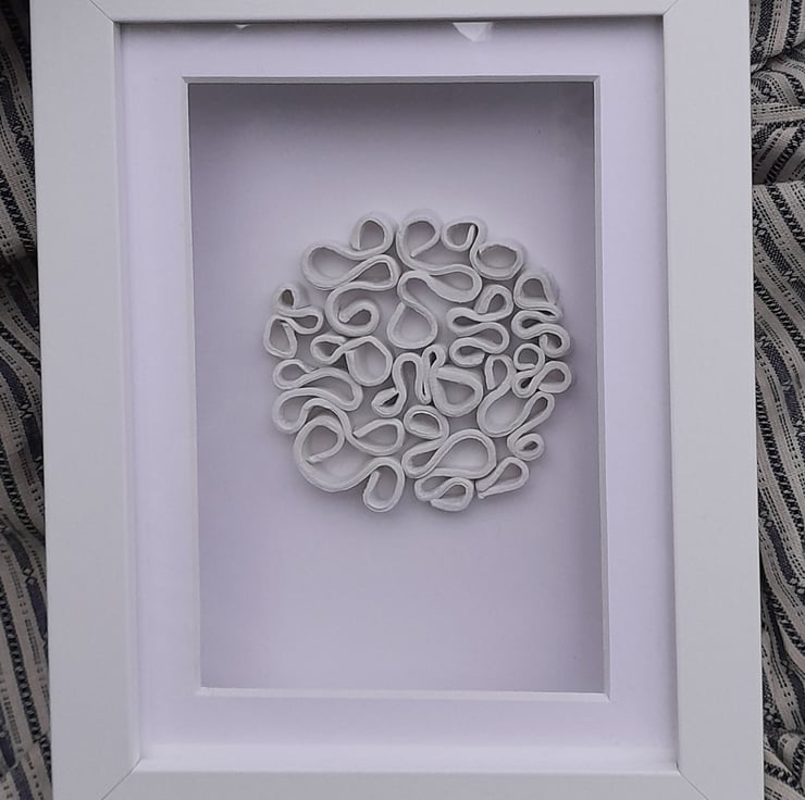 An original, framed piece, created using air dried clay to form a unique three-dimensional design.