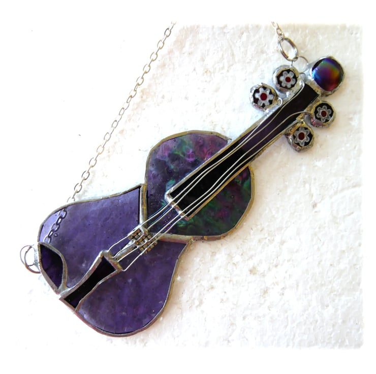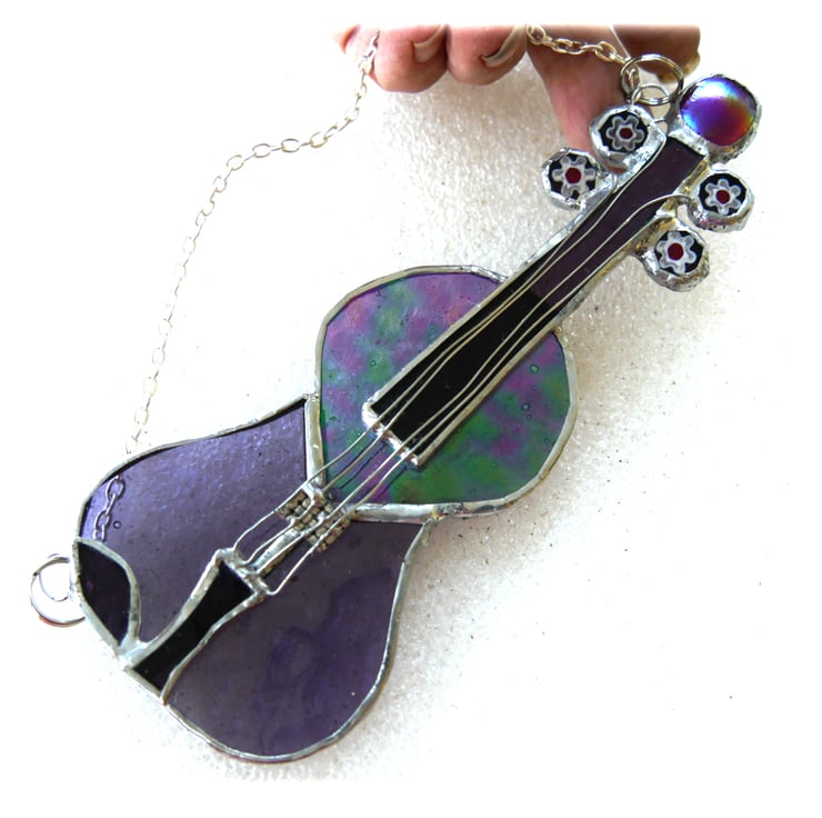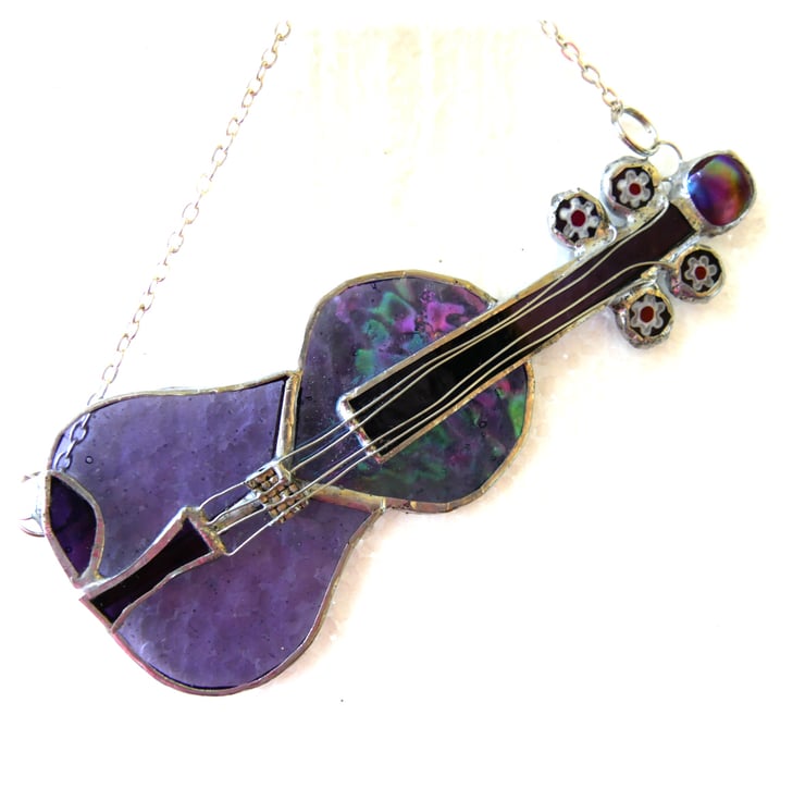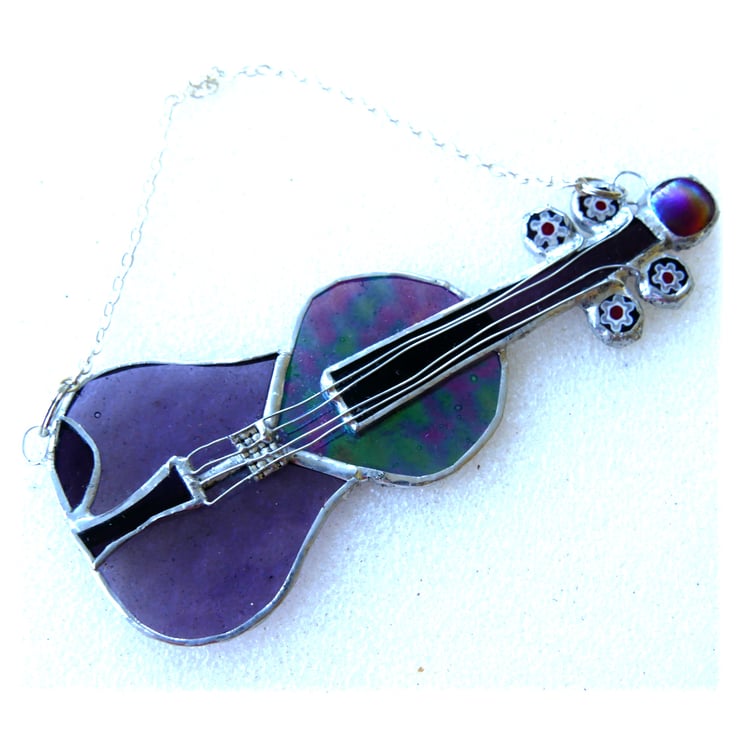 It looks really lovely hanging in the window where it catches the light. The suncatcher hangs from a silver chain which is securely attached in 2 places to the violin via soldered wire rings.